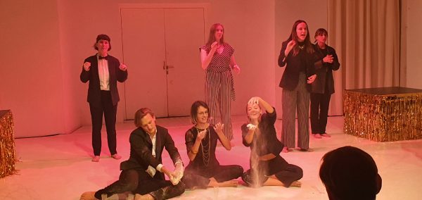 Das Theaterstück hat ungefähr eine Stunde gedauert. Es wurde von jungen Schauspielern und Schauspielerinnen vorgeführt und es bestand eine sehr angenehme Atmosphäre im Raum. Das Theaterstück war sehr musikalisch, man hatte auch das Gefühl wirklich angesprochen zu werden von den Schauspielerinnen und sie haben einen danach zum kritischen Denken verleitet. Zu Beginn des Stückes wurde warmes Fanta an die unterste Reihe ausgeteilt. Auch an drei Stipendiaten. Was doch eigentlich nett klingt.