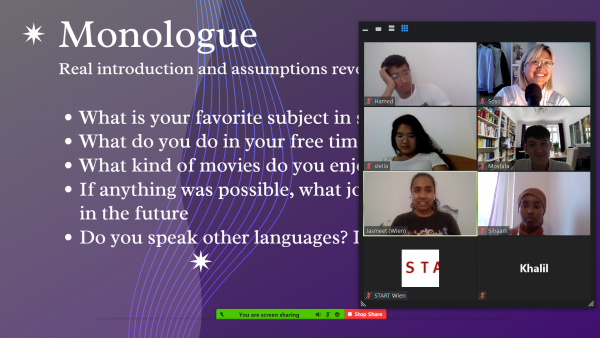 In den speaking classes reichen die Themen von A-Z; aufgebaut sind sie meist aus Monologen, Gruppendiskussionen und Grammatik. Es ist jedes Mal ein Vergnügen, mit den Stipis zusammenzuarbeiten! Besonders spannend sind die Momente, in denen die Liebe zur Sprache entdeckt werden und über die Monate ein Steigerung der Skills erkannt wird. Die besonderen Umstände, dass ich eine Alumna und keine „echte“ Lehrerin bin, tragen ebenfalls zum Erfolg unserer Zusammentreffen bei (denke ich). In diesem Sinne übernehme ich eher die Funktion einer Mentorin oder einem Peer.