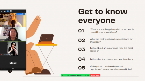 Wichtig dabei ist es, den Teilnehmer:innen die Angst zu nehmen, Fehler zu machen und ihr sprachliches Selbstbewusstsein zu fördern. Die English Classes sind ein sicherer (online) Ort, wo alle Stimmen gehört werden, wo zugehört wird und wo aktiv an den sprachlichen Skills gearbeitet wird.