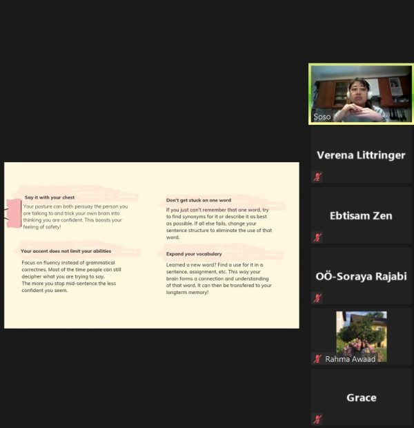 Am Ende zeigte uns Soso ein Video, in dem wir wertvolle Tipps über die Karriere und damit verbundenen Stress erhalten konnten.