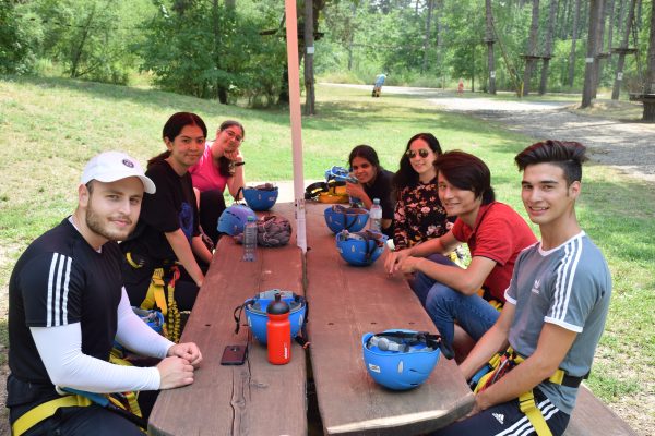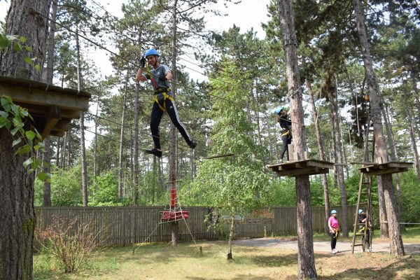 Zum Ende dieses außergewöhnlichen Schuljahres führte das gemeinsame Jahrestreffen die StipendiatInnen von START-NÖ in den Erlebnispark Gänserndorf. An einem Wochenende, wo in anderen Landesteilen Starkregen und Gewitter vorherrschte, blieben wir im Weinviertel gottseidank trocken und konnten eine schöne Zeit im Erlebnispark verbringen. Anfangs teilte sich die Gruppe und es ging für die StipendiatInnen entweder hoch hinaus in den Waldklettergarten oder auf kurze Wanderschaft mit Lamas beim Lama-Trekking. Beide Aktivitäten machten viel Spaß und nach einem guten Mittagessen ließen wir den Nachmittag im Erlebnispark ausklingen – mit Volleyball, Frisbee, Werwolf- oder UNO-Spielen, beim Gummistiefel-Golf oder auch am Slackline-Parkour und natürlich viel Austausch und Plaudern! Vielen Dank an das Team vom Erlebnispark Gänserndorf für die freundliche Betreuung!