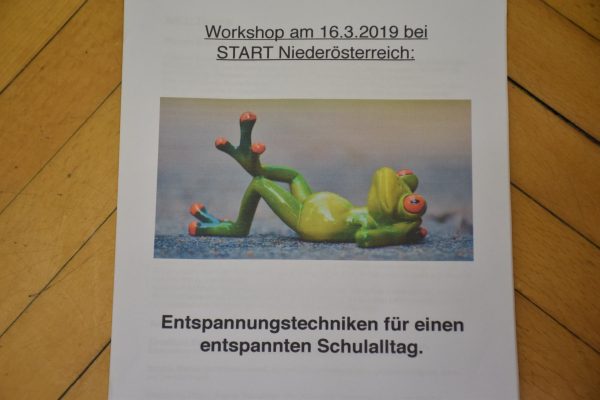 Am Samstag, 16. März 2019, trafen sich Jugendliche von START-Niederösterreich um sich mit verschiedenen Entspannungstechniken vertraut zu machen. Yoga- und Entspannungstrainerin Andrea Hartl gab den Jugendlichen Einblicke in Yoga, Atemübungen, Meditation, progressive Muskelrelaxation und auch Fantasiereisen.