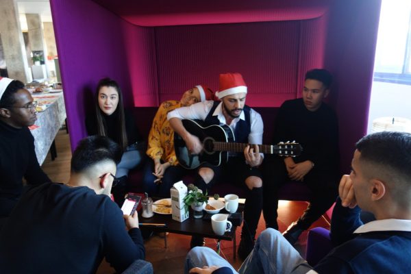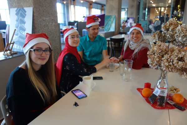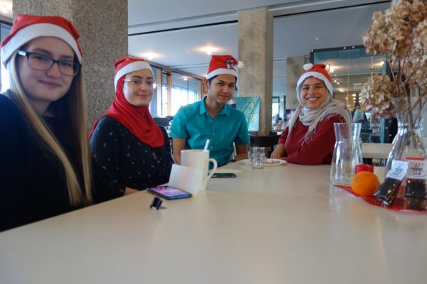 Wir sangen gemeinsam Jingle Bells und Feliz Navidad, und Stipendiat Momo begleitete uns dabei auf der Gitarre. In einem kurzen Video konnten wir nochmal das ganze START-Jahr rückblickend betrachten, und Geschenke durften natürlich auch nicht fehlen. Danach wurde das Buffet eröffnet. Es gab reichlich zu Essen, und es waren Speisen aus den verschiedensten Ländern dabei. Als alle Bäuche gefüllt waren, ließen wir den Nachmittag bei alkoholfreiem Apfel- und Orangenpunsch, netten Gesprächen und Gesang ausklingen.