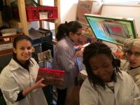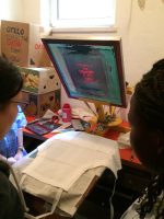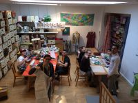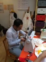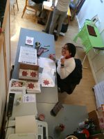 Nadja Fuchs, schulte die Jugendlichen in Siebdrucken, Applikationen mit der Nähmaschine und Upcycling ein und stand stets mit Rat und Tat zur Seite. Stipendiatin Soritta Kim war für die Textgestaltung der Weihnachtskarten verantwortlich.