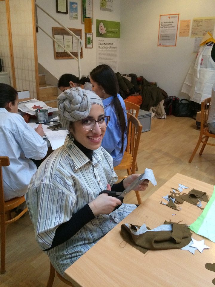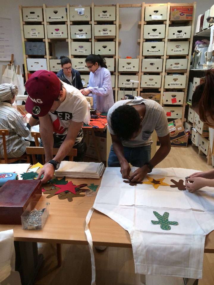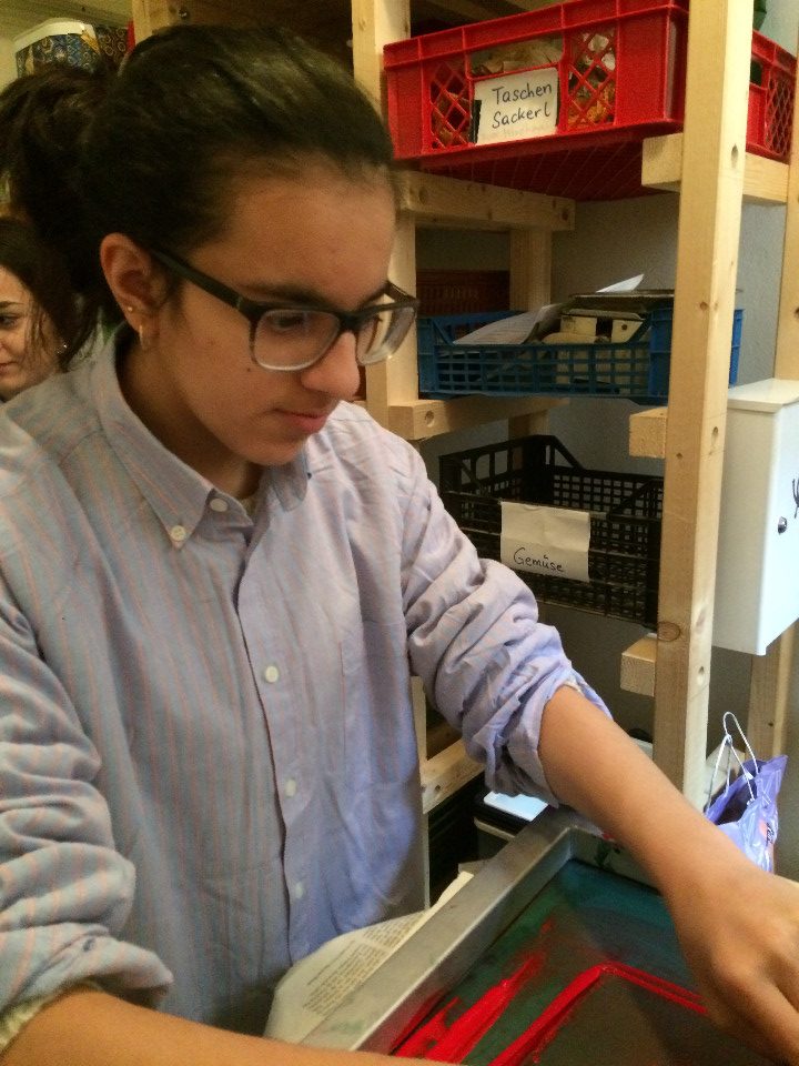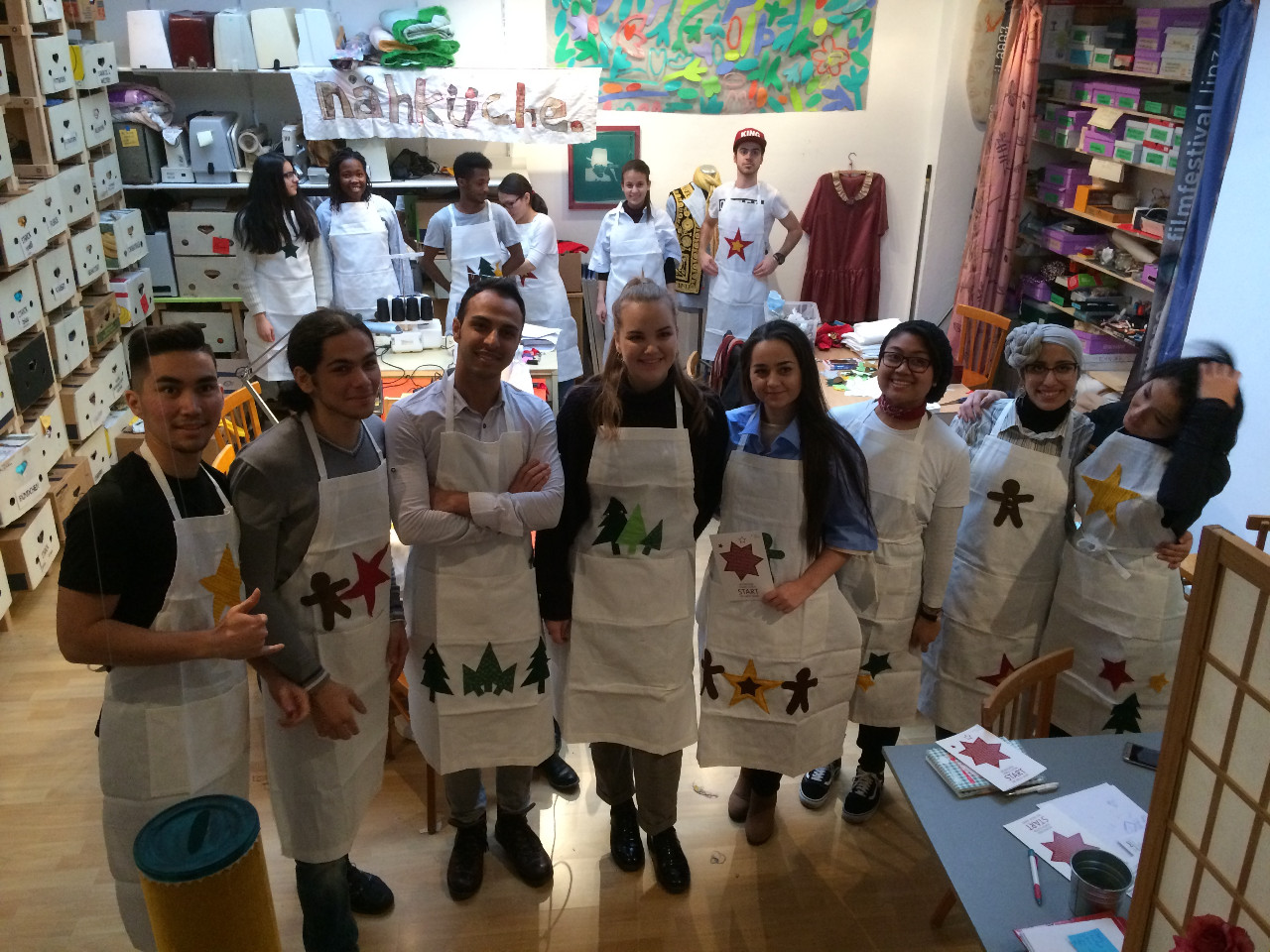 Nadja Fuchs, schulte die Jugendlichen in Siebdrucken, Applikationen mit der Nähmaschine und Upcycling ein und stand stets mit Rat und Tat zur Seite. Stipendiatin Soritta Kim war für die Textgestaltung der Weihnachtskarten verantwortlich.