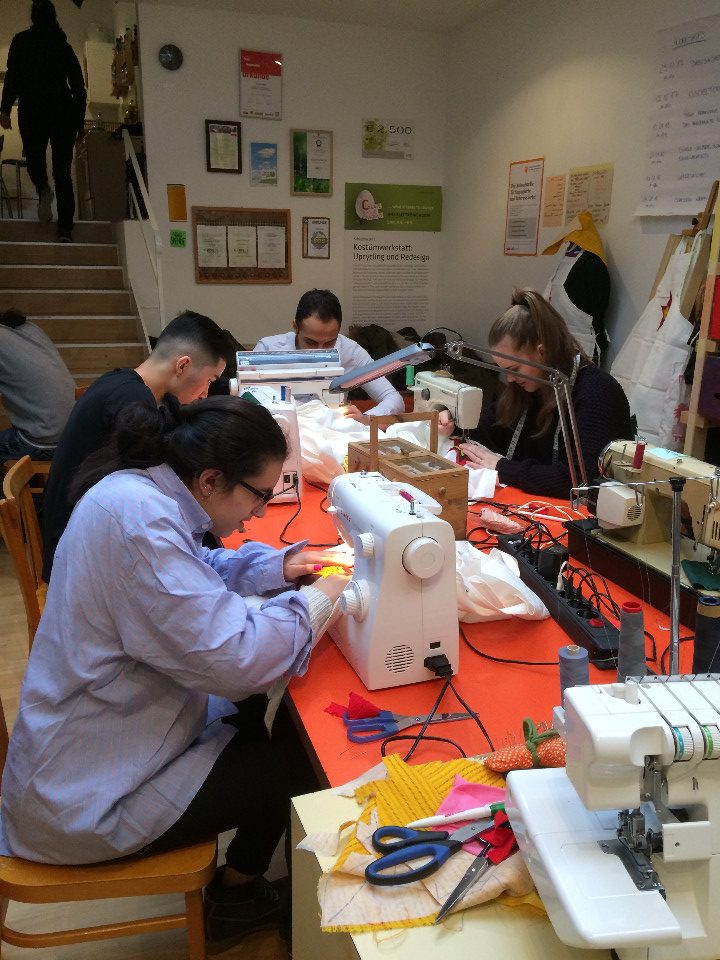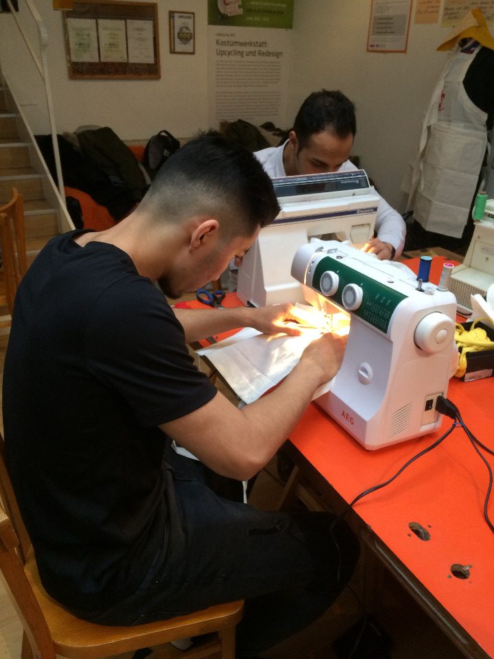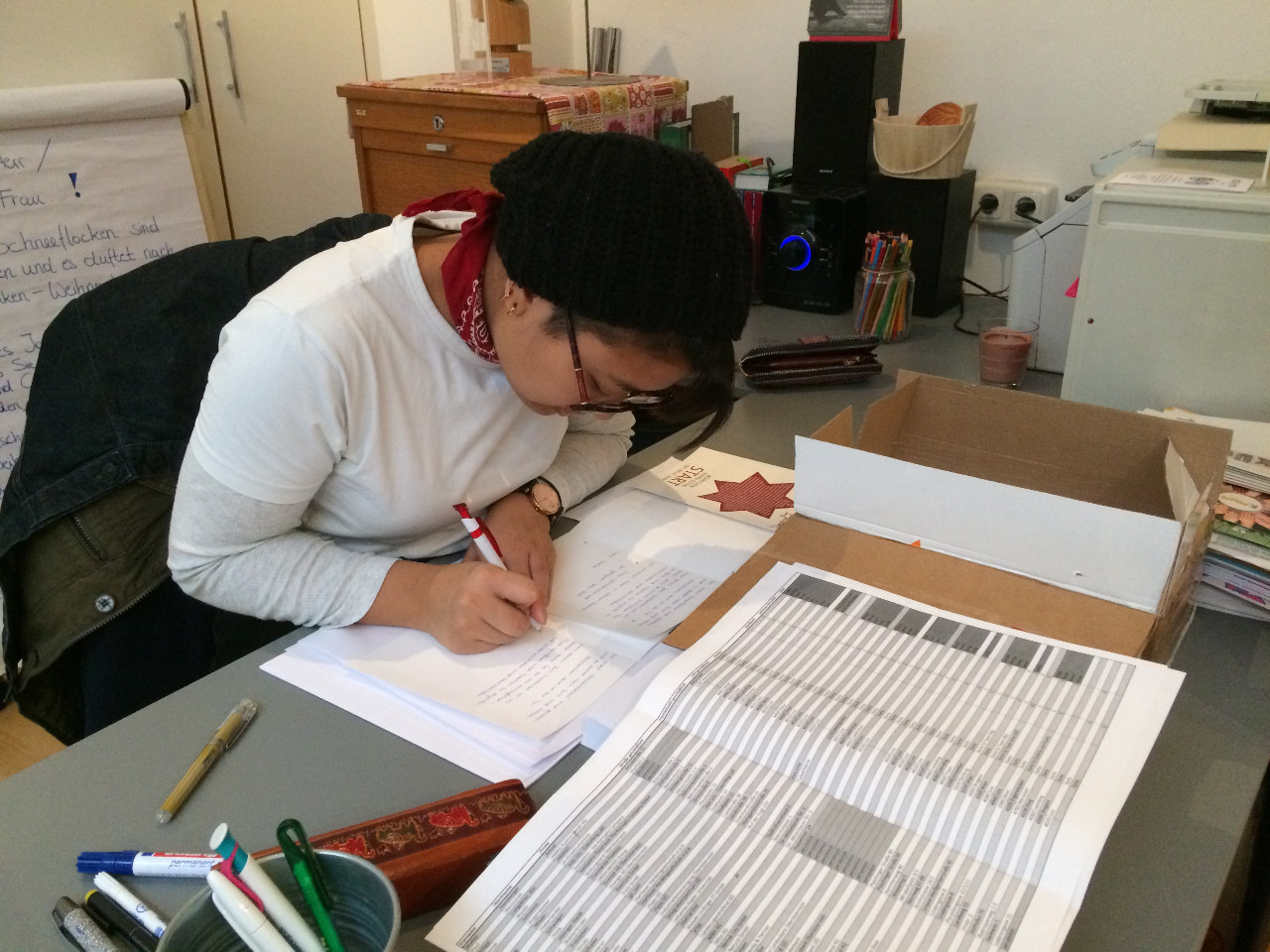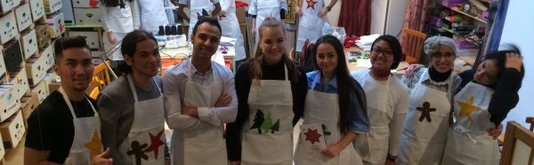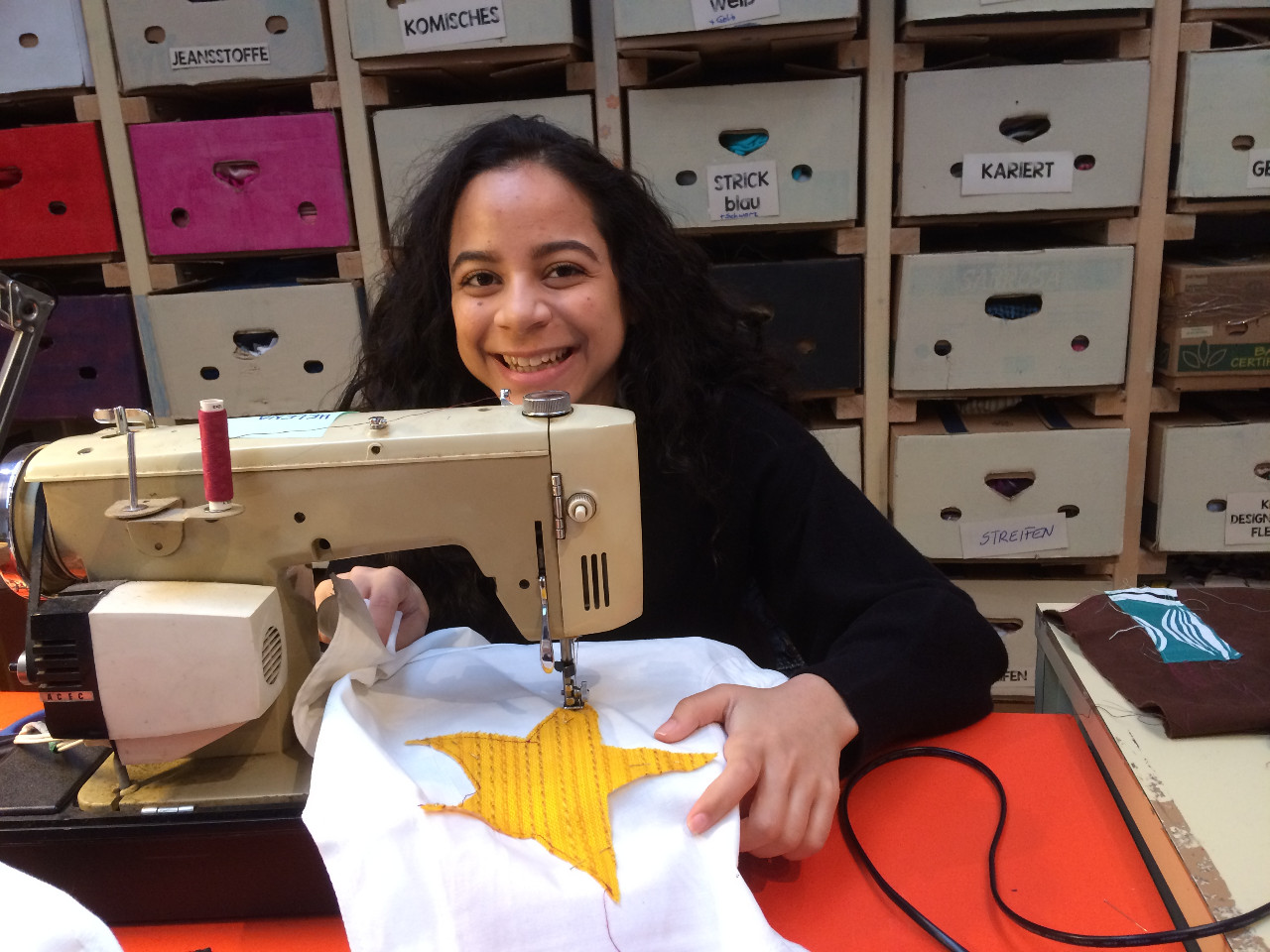 Nadja Fuchs, schulte die Jugendlichen in Siebdrucken, Applikationen mit der Nähmaschine und Upcycling ein und stand stets mit Rat und Tat zur Seite. Stipendiatin Soritta Kim war für die Textgestaltung der Weihnachtskarten verantwortlich.