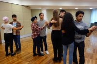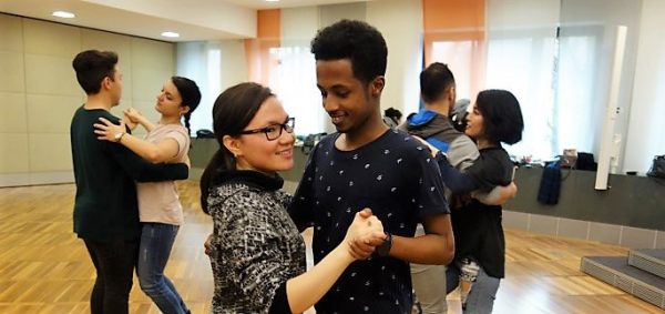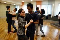 Dabei bewiesen die Stipis nicht nur wahres Tanztalent, sondern auch ein gutes Gedächtnis. So schafften es alle, nach nur wenigen Stunden die Schritte auswendig zu tanzen ohne dem Tanzpartner oder einem anderen Tanzpaar auf die Füße zu treten. Und damit die StipendiatInnen auch für andere Tänze gut vorbereitet sind, wurde noch der Walzer und die Polka geübt.