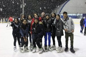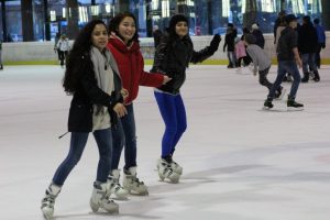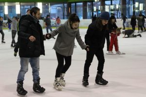 Ganz verhindern, dass der ein oder andere hinfiel, konnte man nicht, aber dafür gab es viel zu lachen und dutzende helfende Hände! Nach einer Stunde fühlten wir uns aber alle schon wie Profis und legten an Geschwindigkeit und Geschicklichkeit zu. Jetzt sah man nur mehr Ballerina auf dem Eisparkett.