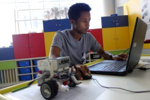 „Als erstes hatten wir die Gebrauchtensinformationen bekommen: Was ist ein Roboter? Wie funktioniert er? u.a Dann haben wir Programme kennen gelernt mit denen man einen Roboter programmieren kann. Es gabviele Bausteine und man musste sehr genau sein sonst funktioniert der Roboter im Einsatz nicht wie geplant.