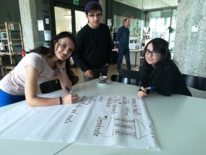 Um einen Einstieg in das Thema zu finden, starteten wir am Vormittag mit der Frage ‚Wann hatte ich meine erste Begegnung mit der Politik? Ohne lang zu überlegen teilten wir unsere ersten Erfahrungen. Sei es durch Wahlen, Kampagnen, Kriege oder Werbungen – wir Stipis wurden uns schnell einig: Politik begegnet uns Tag für Tag und das schon seit der Geburt.