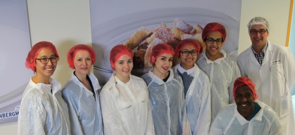 Die Führung durch das Unternehmen startete nach einer Powerpointpräsentation in der uns die Firmen Vivatis und Weinbergmaier vorgestellt wurden. Wir durften hautnah dabei sein und wahrscheinlich das schönste der Welt sehen – den Teig der auf heißes Gusseisen trifft, ein perfekter Pancake – der Duft von Süße lag in der noch warmen Luft. Ich kann mit großer Sicherheit sagen, dass uns das Wasser im Mund zusammengelaufen war.