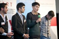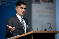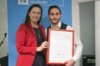 Selbst zu Wort meldeten sich die Stipendiatinnen und Stipendiaten im Rahmen der Feier auch. In bewegenden Reden gaben Stefanie Nguyen, Kadir Toyran, Umair Hussein und START-Alumna Suzana über ihre Wünsche, Ziele, über ihre eigenen Erfahrungen in Österreich als neuer Heimat Auskunft. „Es beginnt damit, wie ich im Jänner vor 4 Jahren nach Salzburg gekommen. Überall war Schnee, Salzburg war ganz weiß und hat mir sehr gefallen. Aber nach einer Woche war der Schnee immer noch da. Ich dachte, bei dieser Kälte kann man doch nicht rausgehen, wie können die Leute hier arbeiten? Oh Gott, was habe ich für einen Fehler gemacht? Allein schon die Tatsache, dass ich heute hier auf der Bühne stehe, beweist, dass ich keinen Fehler gemacht habe! Was ist seit dem erwähnten Januar alles geschehen? Erst mal habe ich ganz viel Wärme erfahren im Clearing-house Salzburg. Ich habe Deutschkurse für A1 und A2 besucht und den Hauptschulabschluss gemacht. Aber dann – wie weiter? Ein weiterer Aufenthalt in Österreich war nur möglich, wenn ich eine Lehre in einem Mangelberuf machte. Die Trumerei im Stadtwerk Lehen erklärte sich bereit, einen Versuch mit mir als Kochlehrling zu wagen. Am Anfang war es hart, aber nach 1 Jahr war ich schon so weit eingearbeitet, dass ich mein nächstes Ziel angehen konnte: Lehre mit Matura. Ich genieße es sehr, mich neben der praktischen Arbeit auch theoretisch weiterzubilden. Und vor einigen Monaten habe ich dann noch das START-Stipendium bekommen.“ erzählt Neo-Stipendiat Umair Hussein in seiner Rede.