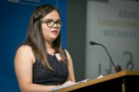 Selbst zu Wort meldeten sich die Stipendiatinnen und Stipendiaten im Rahmen der Feier auch. In bewegenden Reden gaben Stefanie Nguyen, Kadir Toyran, Umair Hussein und START-Alumna Suzana über ihre Wünsche, Ziele, über ihre eigenen Erfahrungen in Österreich als neuer Heimat Auskunft. „Es beginnt damit, wie ich im Jänner vor 4 Jahren nach Salzburg gekommen. Überall war Schnee, Salzburg war ganz weiß und hat mir sehr gefallen. Aber nach einer Woche war der Schnee immer noch da. Ich dachte, bei dieser Kälte kann man doch nicht rausgehen, wie können die Leute hier arbeiten? Oh Gott, was habe ich für einen Fehler gemacht? Allein schon die Tatsache, dass ich heute hier auf der Bühne stehe, beweist, dass ich keinen Fehler gemacht habe! Was ist seit dem erwähnten Januar alles geschehen? Erst mal habe ich ganz viel Wärme erfahren im Clearing-house Salzburg. Ich habe Deutschkurse für A1 und A2 besucht und den Hauptschulabschluss gemacht. Aber dann – wie weiter? Ein weiterer Aufenthalt in Österreich war nur möglich, wenn ich eine Lehre in einem Mangelberuf machte. Die Trumerei im Stadtwerk Lehen erklärte sich bereit, einen Versuch mit mir als Kochlehrling zu wagen. Am Anfang war es hart, aber nach 1 Jahr war ich schon so weit eingearbeitet, dass ich mein nächstes Ziel angehen konnte: Lehre mit Matura. Ich genieße es sehr, mich neben der praktischen Arbeit auch theoretisch weiterzubilden. Und vor einigen Monaten habe ich dann noch das START-Stipendium bekommen.“ erzählt Neo-Stipendiat Umair Hussein in seiner Rede.