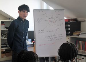 Danach haben wir jeweils eines von den Heimatländern der anderen Stipendiaten aufschreiben müssen und dazu positive und negative Aspekte erfinden. Wenn man keine Idee hatte, was man als negativen Aspekt aufschreiben kann, konnte man sich in die Lage von einem Rassisten hineinversetzen und dann aus dieser Position schreiben. Dann mussten wir alle sagen, ob die Aussage, unserer Meinung nach, richtig oder falsch war.