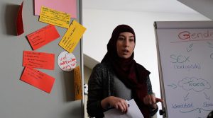 Später haben die Mädchen aufschreiben sollen, was ihnen zu Jungs/Männern einfällt und umgekehrt. Die meisten von uns schrieben Beispiele wie: ,,Frauen können besser kochen´´ Das stimmt natürlich nicht, denn es gibt durchaus Männer die besser Kochen können als manche Frauen. Was Betül uns damit zeigen wollte war, dass Männer und Frauen gleich sind. Somit kamen wir auch schon zu dem Thema Gender. Betül hat uns zu diesem Thema alles Mögliche erklärt und uns einen besseren Einblick verschaffen .Es gab auch viele weitere interessante Diskussionen, die wir an dem Tag geführt haben.