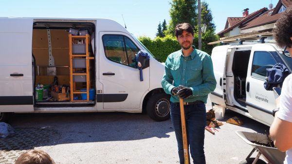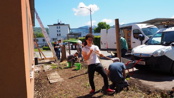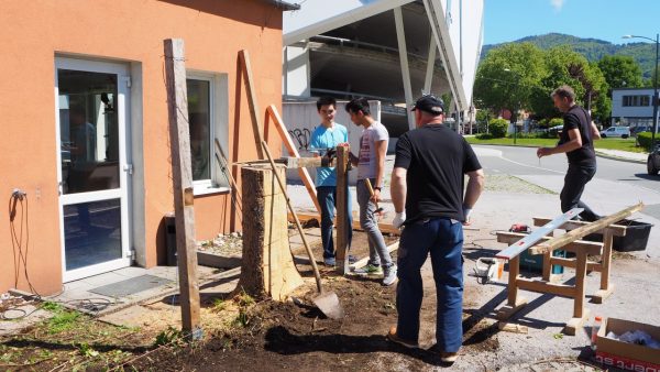 In der Werkstätte der Lebenshilfe Salzburg im Süden der Stadt Salzburg, war es die Aufgabe der Freiwilligen eine Hecke „einzureißen“. Zaun und Gartenstück sollten erneuert werden, um wieder besser nutzbar zu sein. Einen wahren Urwald beseitigten die Helferinnen und Helfer Mahdi, Afra, Mohammad, Qodratullah, Ioana und Toni an diesem Tag. Sehr zum Leidwesen unzähliger Schnecken und Käfer. Bereits zu Mittag war der größte Teil des Bewuchs entfernt und die Vorbereitungen für den neuen Zaun konnten getroffen werden. Zudem erhielt die Gruppe an diesem Tag aber auch viele wertvolle Einblicke in den Alltag und die Abläufen der Werkstätte. Vom Ankommen der Beschäftigten bis hin zu den verschiedenen Tätigkeitsbereichen und der Tageseinteilung in den einzelnen Gruppen. Allgemeine Bewundern galt den kreativen Ansätzen bei der Bewältigung industrieller Aufträge.