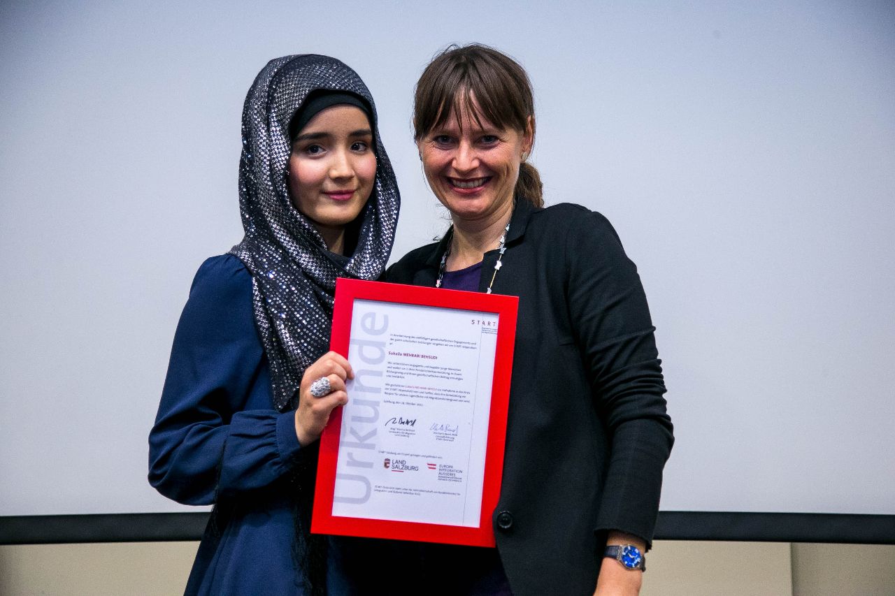 „Ich bin jedes Jahr beeindruckt über die persönliche Entwicklung der Stipendiatinnen. Eine gute Bildung ist die Basis für ein selbstbestimmtes Leben und hilft mit kritischem Blick in unserer Gesellschaft zu leben. Besonders unterstütze ich das Ziel des START-Programmes, Talente zu stärken, Verantwortung zu übernehmen und TeilnehmerInnen für die bewusste Mitgestaltung unserer Gesellschaft zu motivieren“, betont Landesrätin Martina Berthold heute bei der Übergabe der Urkunden an die frischgebackenen Stipendiatinnen.