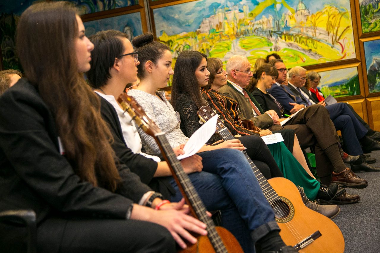 Vielfältig wie ihre Wurzeln, ist auch das soziale Engagement der jungen Menschen bei START: als Klassensprecher, bei karitativen Projekten an der Schule oder bei der Caritas, als Peer Mediatoren oder in der Gemeinde – die Jugendlichen haben einiges auf Lager. In einem Videoprojekt haben sie sich ebenfalls dem Thema „soziales Engagement“ gewidmet und ihre Gedanken in vier kurzen Trickfilmen auf die Leinwand gebracht. Herausragende Beispiele für den Einsatz der StipendiatInnen werden den geladenen Gästen von START-Österreich Geschäftsführerin Katrin Bernd vorgestellt. Verabschiedet werden auch acht MaturantInnen, die mit ihrer Matura gleichzeitig das START-Programm abgeschlossen haben. START-Alumna Marina Razumovskaja und Musikerkollege Cecilio Perera sorgen musikalisch für Stimmung. Als großes Finale des Abends tragen die Stipendiatinnen Kristina, Dijana und Coni „Count on me“ von Bruno Mars vor. Zur feierlichen Zeremonie in der Salzburg AG erschienen nicht nur Eltern, Lehrer und Freunde auch zahlreiche Ehrengäste aus Politik, Wirtschaft und Kultur waren dabei.