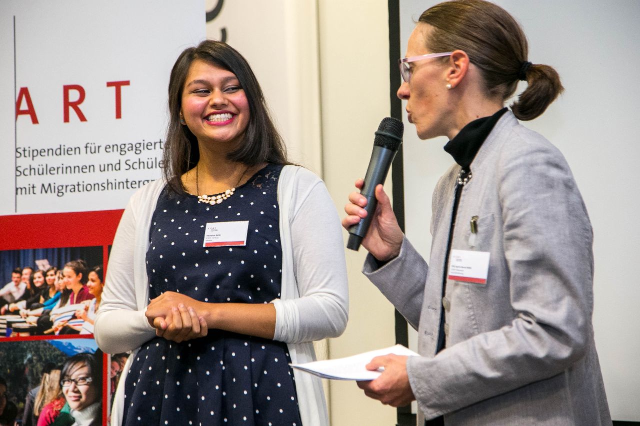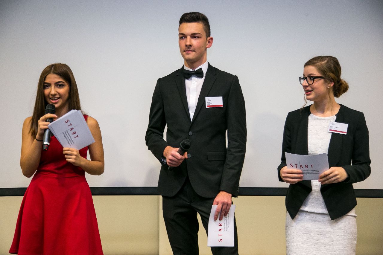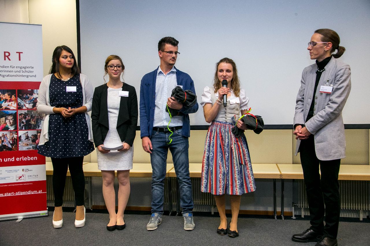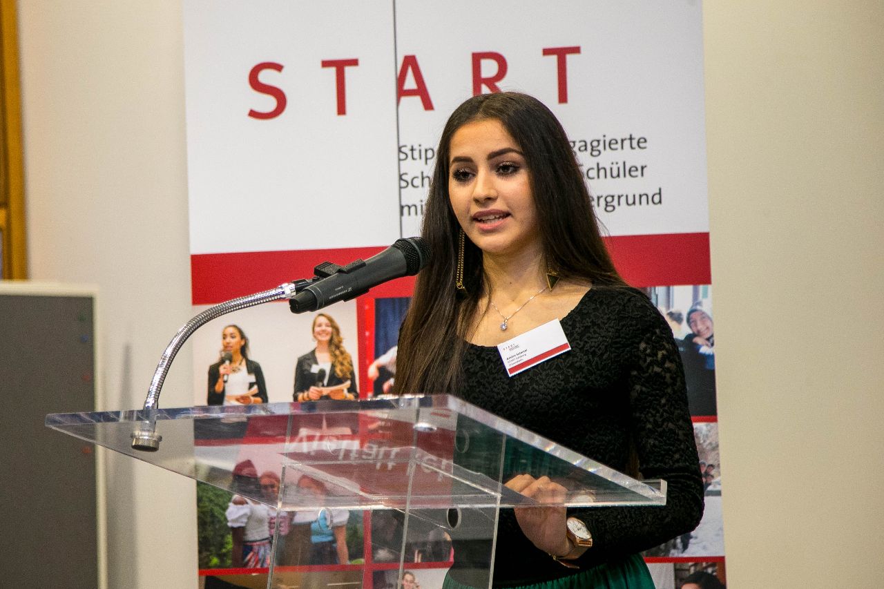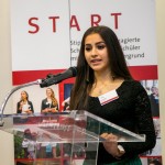 Zum sechsten Mal können Stipendien an engagierte Jugendliche mit Migrationsgeschichte in Salzburg vergeben werden. Die neun Schülerinnen heißen Hevidar, Rana, Suhaila, Betül, Stefanie, Viktorija, Sheba, Kristina und Paula. Sie haben ihre Wurzeln in Syrien, Afghanistan, der Türkei, Vietnam, Serbien, Ghana und Kroatien. Schnell haben sie sich in die bestehende Gruppe der START-StipendiatInnen eingefunden, wurde doch gemeinsam seit einigen Wochen intensiv für das Programm des Abends geprobt. Selbst zu Wort melden sich die Stipendiatinnen und Stipendiaten im Rahmen der Feier auch. In bewegenden Reden geben sie über ihre Wünsche, Ziele, über ihre eigenen Erfahrungen in Österreich als neuer Heimat Auskunft. Auch Einblicke in und eine Rückschau auf das vergangene START-Jahr dürfen nicht fehlen. Mit einem selbst geschnittenen Video können die Gäste gemeinsame Aktivitäten, Bildungsseminare und Exkursionen nacherleben.