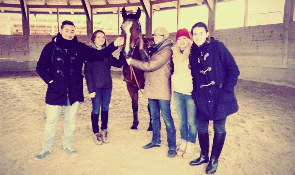 Ganz neue Erfahrungen durften die Salzburger START-Stipendiatinnen und Stipendiaten am Samstag den 06.12.2014 auf dem Pferdehof „Gniglerbauer“ in Koppl bei Salzburg machen. Auf Einladung von Frau Andra Spallart erkundeten Coni, Miri, Emre, Dijana und Shabnam das Leben auf dem Bauernhof, bevor sie sich selbst in den Sattel schwangen. Die Pferde Carlo und Junior trabten dabei gutmütig mit den Reit-Neulingen einen Nachmittag lang durch die große Halle. Nach so viel Anstrengung brauchten Pferde und Reiter eine Stärkung. Beim anschließenden Aufwärmen im gemütlichen Stüberl erzählte Frau Spallart bei Tee und Keksen noch viel aus ihrem Erfahrungsschatz im Umgang mit Pferden.