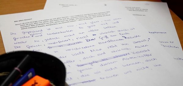 Das neue Jahr startet beim Stipendium mit dem zweiten Teil der Workshop-Reihe zum Thema „Kreatives Schreiben“. Es trafen sich zehn Stipendiaten am Freitag, 11.01.2019 und befassten sich mit Thema wie man etwas ausführlicher beschreiben kann. Daraufhin machte der Deutschlehrer die Stipendiaten auf deren fünf Sinnesorgane aufmerksam. Was sehen sie? Was riechen sie? Was fühlen sie? Was hören sie? Was schmecken sie? Das alles waren die Grundlagen, auf denen sie dann aufbauten. Ohne zu überlegen starteten sie und begannen Kleinigkeit zu beschreiben wie zum Beispiel ein Locher, ein Pinnnadel, ein Koffer oder ein Buch. Zwischendurch machten sie fünf oder zehn minütige Pausen, in denen sie Kekse aßen. Am Ende schrieben sie alles was sie an dem Tag gelernt hatte in einer frei erfundenen Geschichte zusammen.