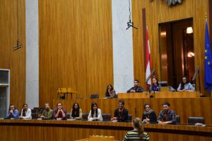 Die historischen Erlebnisse/ Geschehnisse wurden ebenfalls erzählt. Wir hörten über Bombardierungen von dem zweiten Weltkrieg und daraus folgende Schäden bis hin zu den Plänen der künftigen Renovierung. Spannend war auch, dass wir durch den Rundgang mit der NEOS-Mitarbeiterin nicht nur über das Gebäude und die Aufgaben von Nationalrat und Bundesrat etwas erfahren haben, sondern auch über die Arbeit in einem parlamentarischen Club, wie und warum sie dort zu arbeiten begonnen hat und vieles mehr.