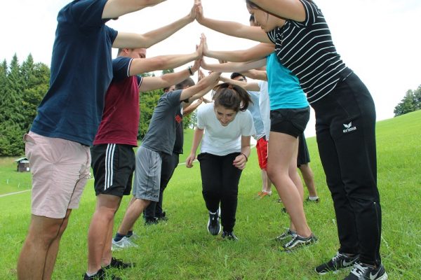 Nach gemütlichen 2,5 Stunden wandern kamen wir an unserem Ziel an – dem Pfänder. Um ein wenig auszuschnaufen suchten wir uns einen gemütlichen Platz in der Wiese, aßen zur Jause und unterhielten uns noch mehr. Höhepunkt des Tages war es nicht nur gemeinsam den Berg zu „erklimmen“, sondern eher die Kennenlernspiele, die uns näher zusammenbrachten. So lernten wir uns gegenseitig zu Vertrauen, indem wir uns z.B. der Gruppe „frei fallen“ ließen oder beim Merk-Ball spielen als Team erfolgreich sein zu können, anstatt sich alleine den Sieg zu erzwingen.