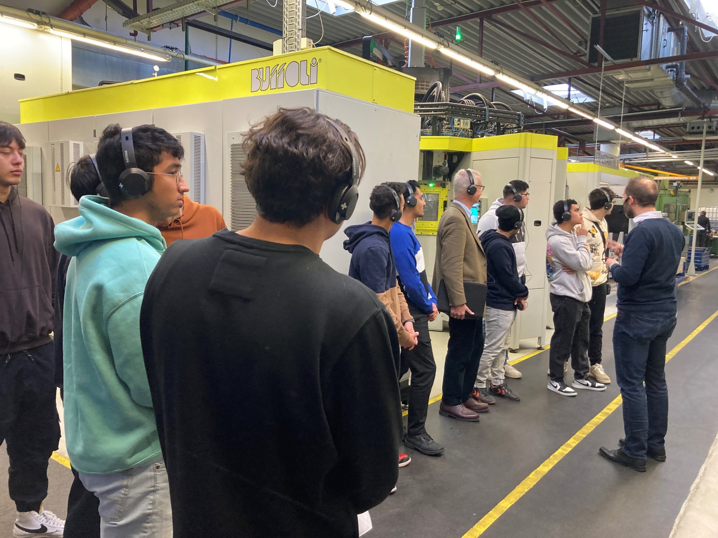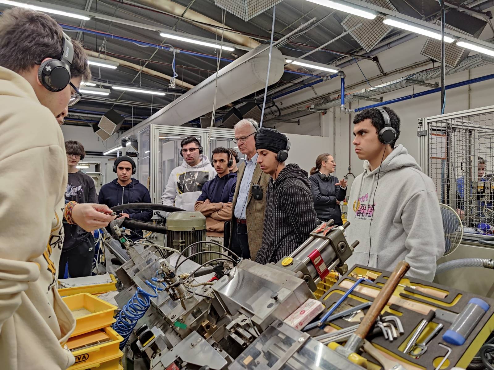 Danach erhielten wir die Gelegenheit das Werk zu besichtigen, Dank der zur Verfügung gestellten Headsets konnten wir auch dem Vortrag folgen, und wir waren vor allem von den Clean-Production-Anlagen (funktionieren ohne Öl und Wasser für die Kühlung) und deren Geschwindigkeit und Präzision beeindruckt. Wir erhielten einen guten Überblick über die verschiedenen Bereiche und Arbeitsschritte der Produktion. Zu guter Letzt wurden wir eingeladen die Entwicklungsabteilung zu besichtigen, wo uns Herr Johann Notbauer, Konzernbereichsleiter Marktinnovation und Technologie zeigte wie die Testungen und Belastungsproben der laufenden und neuen Produkte stattfinden.