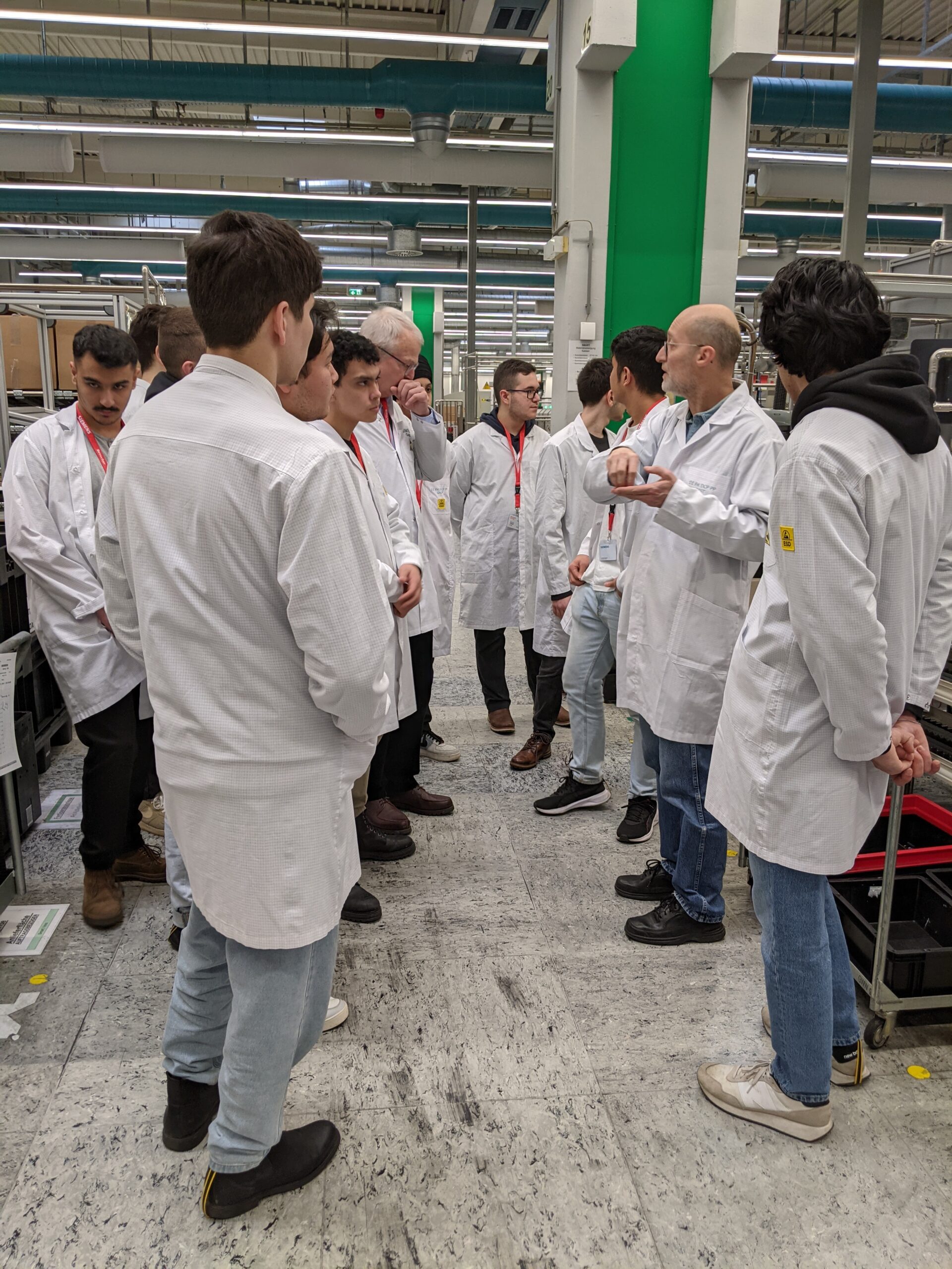 Der Leiter der Vorentwicklung, Harald Schweigert, nahm sich viel Zeit, um uns das Unternehmen und die Fachabteilung vorzustellen sowie die Besonderheiten und Anforderungen an die Produkte zu erklären. Darüber hinaus wurden auch die Berufs- und Arbeitsmöglichkeiten in diesem Bereich vorgestellt und wir konnten die hochmoderne Produktion besichtigen. Am Ende wurden wir noch auf ein Mitttagessen in die Kantine eingeladen. Vielen herzlichen Dank!