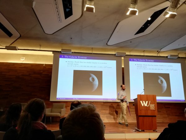 Diese Fragen wurde uns am Dienstag den 9.1.18 von Professor Zachary Feinstein, Ph.D. von der Washington University in St. Louis im Rahmen von WUmatters / WUtalks beantwortet. Mit einem Laserschwert bewaffnet berichtete er was die Herstellung der beiden Todessterne tatsächlich in galaktischer Währung gekostet hätte und welche Auswirkungen auf das Bankenwesen und die Wirtschaft die Zerstörung bedeutet hätte. Ergebnis: Todessterne sind nicht günstig! Die Kosten belaufen sich auf 612.000.000.000.000.000.000.000.000.000.000 (=612 Quintillionen) galaktische Credits.