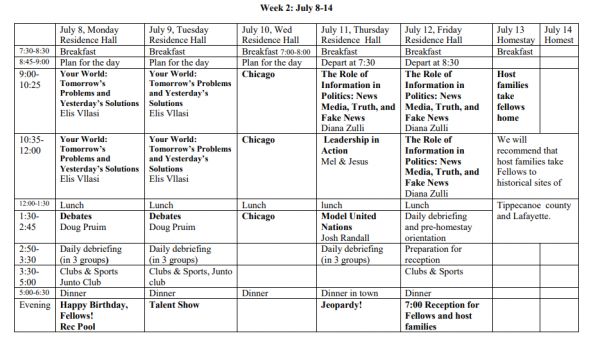 Die Fellows am Campus der Purdue University stehen jeden Tag um 7 auf und machen sich auf dem Weg zur Vorlesung, bevor sie natürlich in der Kantine gefrühstückt haben. Vor Vorlesungsbeginn, jeden Morgen, gibt es 15 Minuten „Uncle Ben says“. Hierbei beschäftigen wir uns mit philosophischen, bzw. politischen Texten des Namensgeber des Programmes Benjamin Franklin.