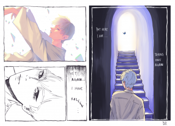 A light bright, brighter, and bright. So bright that it could blind me. It hurts. The pain, it distorts me. It gets warm, warmer, and warmer. I try to feel the light. I try to get closer to the source. It comes closer. Close. I feel my imprisonment easing. I stretch and loll. I try. I try. And all of a sudden. Sudden. Sudden. Them chains, they break. With the last of my strength, I struggle myself up. There is something. Something that strengthens me. It feels familiar. It feels trustworthy. It feels good.