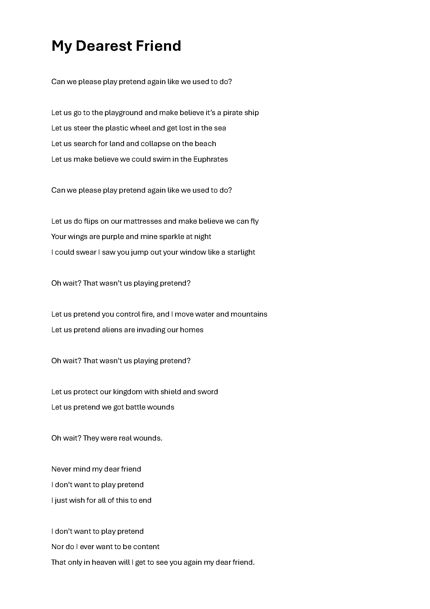 Zidan Aldarwish für ihre Performance „Botschaft an den Krieg“