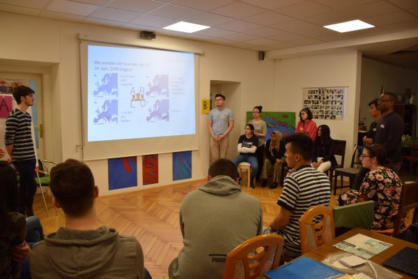„Understanding Europe“ wurde zum gelungenen Kurs, denn die Erwartungen nach reger Diskussion wurden erfüllt. Die jungen Trainer haben den Stipendiat*innen aus Wien und Niederösterreich die EU, ihr Konzept und ihre Funktionsweise näher gebracht. Dabei brachten sie simple Erklärungen und aktivierten die Stipendiat*innen mit interaktiven und informativen Parts. Schließlich wurden zwei Gruppen für zwei verschiedene Workshops gebildet. Hier erörterte eine Gruppe Probleme und diskutierte über Möglichkeiten zur aktiven Veränderung, während die andere Gruppe an den Gesetzgebungen der EU arbeitete.