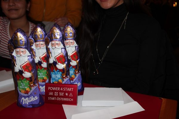 Sogar die sogenannten Eisprofis brauchten eine Weile, bis sie wieder hineinkamen mit dem Eislaufen, denn für sie war es auch das erste Mal in diesem Winter. Stipendiat Ghaiath meinte: „Ich glaube, dass ich noch nie in meinem Leben so viel gelacht habe wie heute.“ Natürlich, nach so einem anstrengenden, aber äußerst amüsanten Ausflug, fing der Bauch an zu knurren und deshalb gingen wir direkt nach dem Eislaufen in eine Pizzeria in Bregenz. Unsere Landeskoordinatorin Sandra Kunz hatte dort für uns reserviert, um uns mit weiteren „Stipis“ und Bill und Maude zu treffen, um dort gemütlich zusammenzusitzen, zu essen und zu trinken und eine kleine Nikolausfeier zu zelebrieren. Zu unserer großen Freude und unserem Glück, bekamen wir noch tolle Geschenke (eine supercoole Powerbank und einen Schokoladen-Nikolaus). Für so einen – mehr als nur tollen – Abend, bedanken wir uns herzlich, denn ohne START wäre dies gar nicht möglich, was ziemlich schade wäre.
