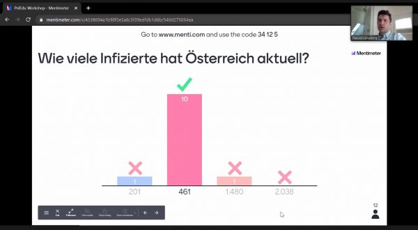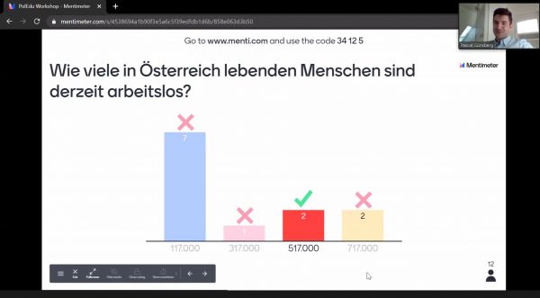 Dieser Workshop war sehr informativ und flexibel gestaltet. Neben den interessanten Informationen, wie Österreich zur Zeit wirtschaftlich mit dem Coronavirus umgeht und welche Auswirkungen aufgrund des Covid-19 entstanden sind oder entstehen werden, gab es einen Onlinequiz, wo wir unser politisches Wissen und das Wissen über der aktuellen Lage mit den anderen Teilnehmern/innen messen konnten, was mir gut gefallen hat. Es gab ausreichend Möglichkeiten, wo man selbst zum Wort kommt. -Mahdi