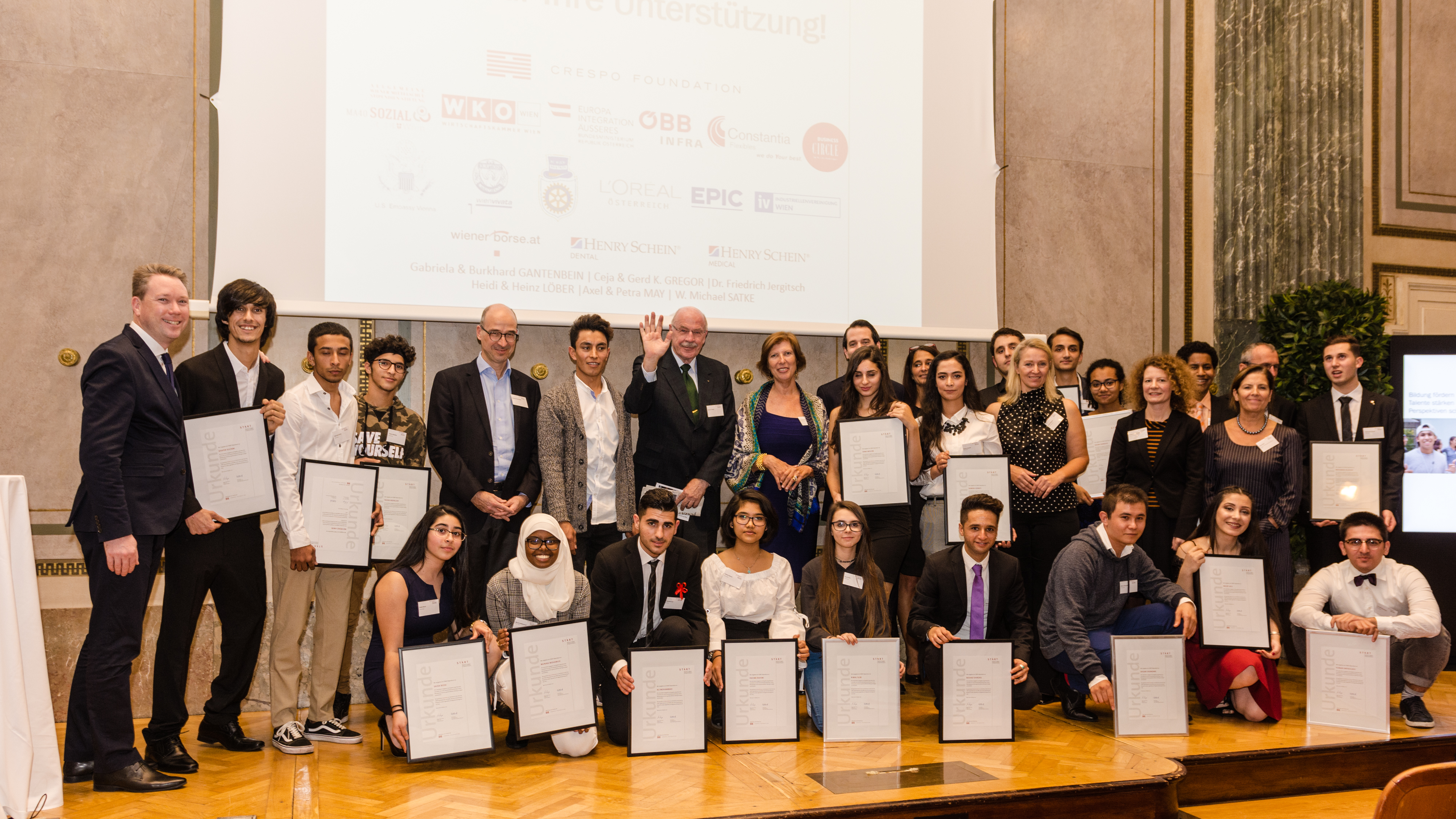 Wien, 19. Oktober 2017 – 20 ausgewählte Schülerinnen und Schüler mit Migrationsgeschichte übernahmen am Montag bei den Feierlichkeiten im Wiener Haus der Industrie ein START-Stipendium. Damit gehören sie bereits zum 12. Jahrgang, der vom Verein START Stipendien Wien auf dem Weg zur Matura unterstützt wird. Die neuen StipendiatInnen haben ihre Wurzeln unter anderem in Ägypten, Afghanistan, im Iran oder in Somalia.