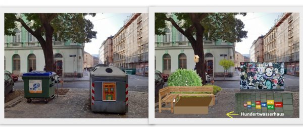 Diese Pläne präsentierten wir dann im Frühjahr 2020 dem Bezirksvorsteher Erich Hohenberger. Dieser sagt uns dann eine Besichtigung vor Ort Unterstützung zu und sorgte dafür dass einige Müllcontainer übersiedelt wurden und Platz geschaffen wurde für unsere „Gratzlhetz“!