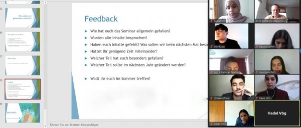 „Am 28.03.2021 hatten wir, alle Stipisprecher/innen aus allen Bundesländern, unser erstes Meeting. Unsere Moderatorin und Trainerin Anna hat das Thema auf eine angenehme Art vermittelt. Theorie- und Arbeitsphase waren in einer sehr guten Harmonie. Der Workshop diente zu unserer Grundausbildung als Stipisprecher/in, mit vollem Erfolg. Wir wurden unseren Aufgaben bewusst und werden sie in der Zukunft sicherlich erfüllen.