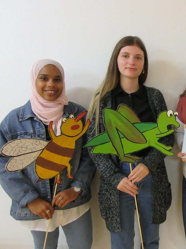 Im September zum Beispiel fand am Tag der Sprachen ein Lerncafé statt, bei dem sich Kinder aus den verschiedensten Ländern trafen. Mir hat es persönlich sehr gefallen, da ich es liebe die Zeit mit Kindern zu verbringen, selbst wenn es etwas anstrengend werden kann. Wir haben mit einer kurzen Geschichte begonnen, die in verschiedenen Sprachen mit selbstgemachten Figuren dargestellt wurde. Danach haben wir gemeinsam gebastelt und beendeten den Tag mit einem leckeren Buffet.
