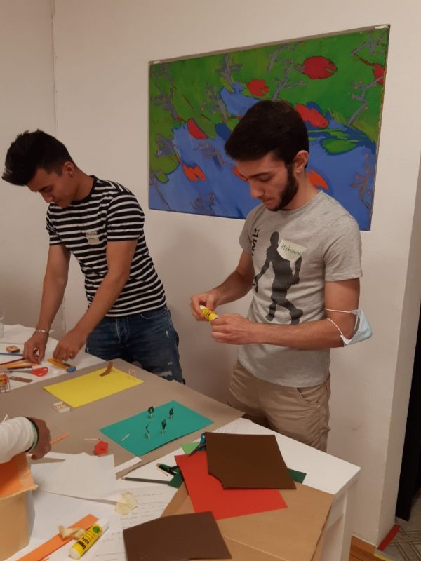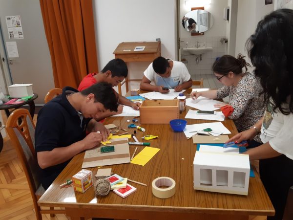 Danach gabe es Übungen zur Aktivierung der Wahrnehmung unserer Sinne und über die Reflexion der persönlichen Erfahrungen im Bereich Wohnen. Wo ist in meiner Wohnung der Platz wo ich mich am liebesten aufhalte? und warum ist das mein Liebligsplatz? Wenn ich an meiner Wohnung, meinem Zimmer etwas ändern würde, was wäre das? Was wäre mir wichtig?